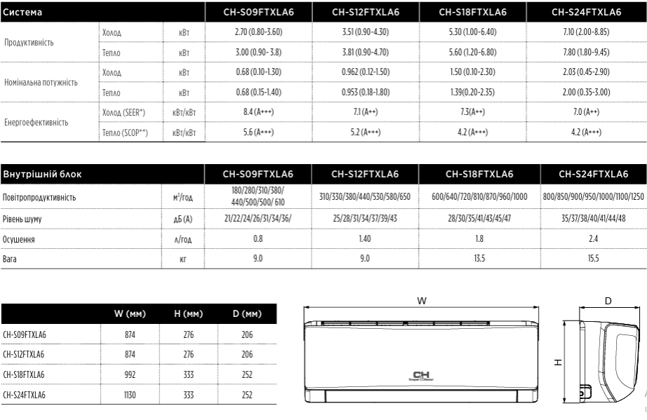 Cooper&Hunter CH-S24FTXLA6 Arctic Plus — это инверторный тепловой насос бытового назначения премиум-класса, рассчитанный на помещения площадью до 70 м². Устройство стабильно работает на обогрев в диапазоне внешних температур от -25 до +30°C, а в режиме охлаждения — от -15 до +50°C.